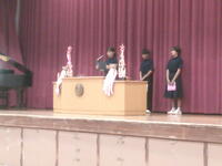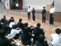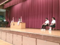 始業式後、市内英語弁論大会に出場する3名によるスピーチが行われました。9月5日の本番も自信をもって臨んでください!