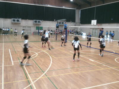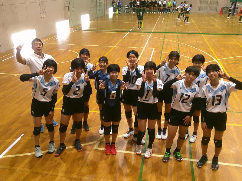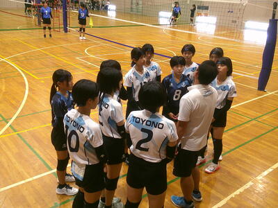 豊野中女子バレーボール部は、元気に声を出しながら、サーブで攻める展開で、優勢な試合運びが見られました。