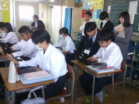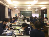 午後の研究授業の様子になります。たくさんの先生方が参観したため、生徒のみなさんは少し緊張したでしょうか?