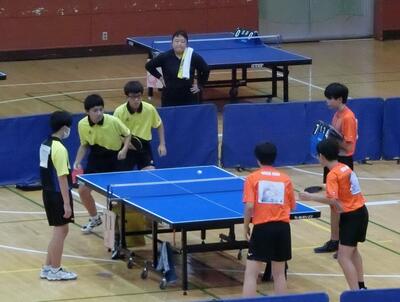 男女ともに行われたのですが、個人戦の代表決定戦では、出場する選手とその練習相手となる選手が1・2名帯同するチームばかりですが、豊野中男子卓球部の場合は2年生の部員ほとんどが帯同していました。そして、出場ペアの練習相手としてだけでなく、代表決定戦に出場しているたった1ペアをみんなで全力で応援していました。勝ち抜いたあとも、代表決定戦に参加している他校の選手の戦型や戦い方を熱心に研究していました。学校総合体育大会の時の現3年生の時もそうでしたが、豊野中男子卓球部は本当に素晴らしいチームだと感じました。卓球が好き、挨拶がしっかりできる、会場の雰囲気も察することができる、そしてよく気がつく、仲間を大切にできる。このチームは今後もっともっとまわりから応援されるチームになると確信しました。「このダブルスは、上手い選手を2人集めた即席のダブルスではないんです。団体戦におけるチームの正ダブルスなんです。この二人が県大会出場を決めてくれたことは、チームにとってすごく大きなことなんです!本当に嬉しいです。」と隣で応援していた部長さんが熱く話してくれました。次の関東大会が埼玉開催、埼玉県の出場枠も広がるということもあり、関東大会出場につながるような戦いを県大会ではしたいんだと言っていました。卓球の県大会は、上尾運動公園体育館にて、10月29日男子団体戦、30日女子団体戦、31日男女個人戦の日程で開催されます。男子卓球部の躍進をぜひ楽しみにしたいと思います!