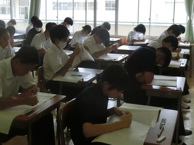 2学期が始まり今日で4日目。授業も少しずつ始まりました。本日、3年生は東部地区テストで、教室棟の2階は朝からとっても静かです。部活動を引退して夏休みも終わり、少しずつですが、顔つきや意識が変わってきた3年生が増えてきた気がします。この2学期の終わりには志望校もしっかり決定して、私立高校の願書を書いている頃ですね。受験を終えて、進路が決まった生徒もいることでしょう。自分の進路としっかりと向き合って、受験に向けた準備を始めていきましょう! 1・2年生もしっかりと授業に取り組んでいました。1・2年生の皆さんに1つだけアドバイスできるとしたら、「1つの授業を受けたら、今日は何を学んだのか。新しく知ったこと。キーワード。」など授業後に、言えたり、書けたりできるといいですね。帰宅した時もそうです。授業後も、帰宅後も、これがしっかりと言えるようになると定着につながっていきやすくなるのではないかと思います。ぜひ、意識を高く持って授業に参加するよう心がけてみてください。