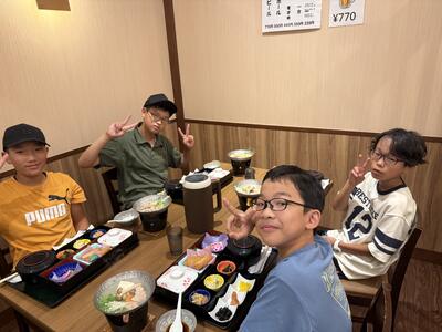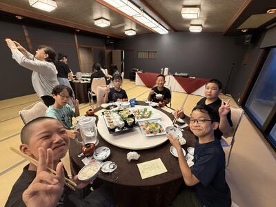 子どもたちはみなさん元気です。全員が予定よりも早く集合し、おいしく朝食をいただきました。