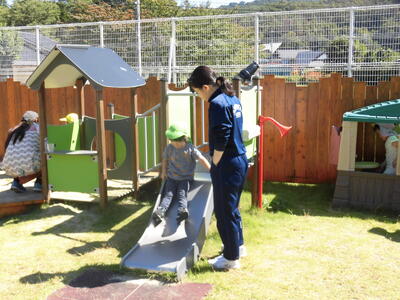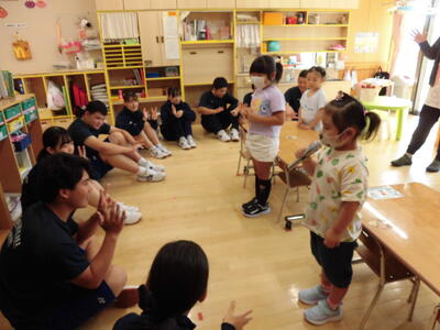 9年生の家庭科の授業でかわうち保育園を訪問しました。