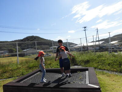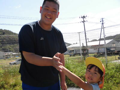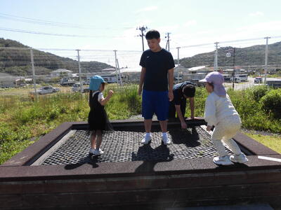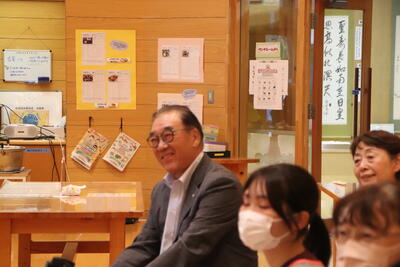 サツマイモ作りで畑をお借りした遠藤村長ご夫妻、谷さんと放課後児童クラブの猪狩美穂さんにも来ていただきました。