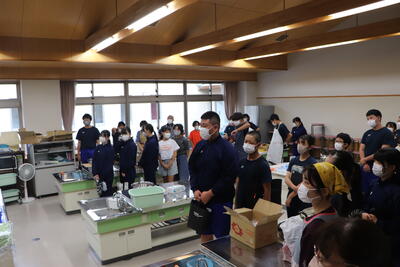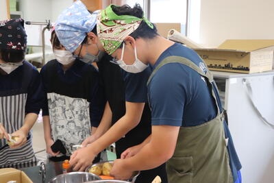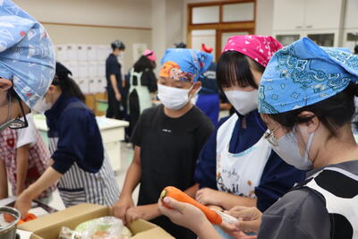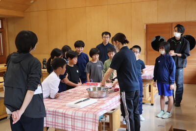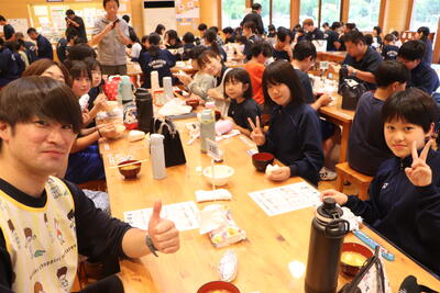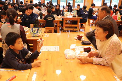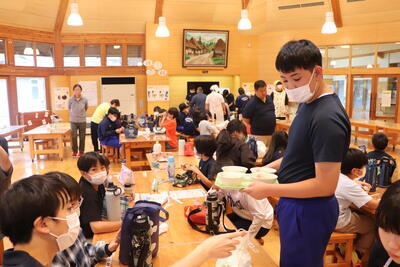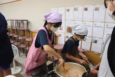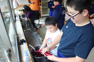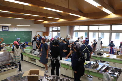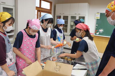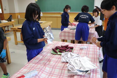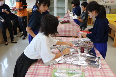 雨模様だったので、芋煮は家庭科室で作り、焼き芋は下準備を3~5年生が行い、調理員の渡邊さんにオーブンで焼いていただきました。