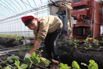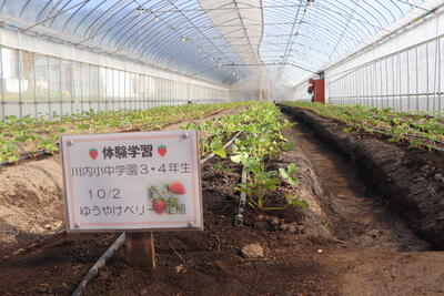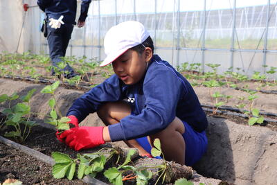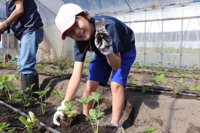 猪狩いちご園さんにお世話になり、苗植え体験をすることができました。