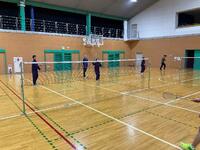 バドミントン部は、素振りや基礎打ちなど、先輩をお手本にして動きを真似していました。