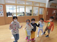 また、「運動会の歌」では、紅白で競い合って腕を元気いっぱいに振り上げていました。