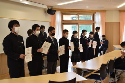 4月19日(月)、生徒会任命式が行われました。決意に満ちた表情で、任命状を受け取りました。呼名の返事も全員が立派に行うことができました。これからの学校生活を生徒会、委員会を中心によりよいものにしていってほしいと思います。