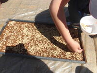 今日は、種まきを行いました。「早く芽を出してね。」「おいしいお米ができますように。」と、種の一粒一粒に願いを込めながら、ていねいに種まきを行いました。