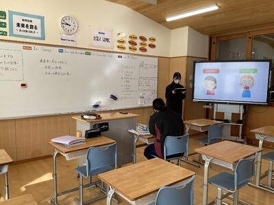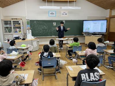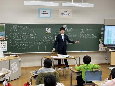 2年生の授業で1年生の担任の柳沼先生が道徳の授業の事前研修を行いました。