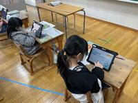 2年生の算数では、タブレットを活用したドリル学習で習熟を図っています。学習した内容をしっかり理解できているか正解かどうかも瞬時に確認できるので、自分の苦手な問題が分かります。