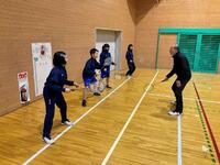 バドミントン部は構えや打ち方などの基本の動きを確認していました。