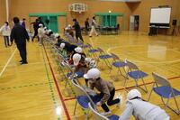 1年生は、パイプ椅子をきれいにしています。汚れているところを見つけて、ピカピカに磨くことができました。