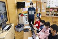 昼休みに楢葉南・北小学校の児童とオンラインでつながり、しりとりゲームを行いました。絵で伝えようとしていますが、なかなか伝わらず苦戦しているようです。短い時間でしたが、楽しく交流することができました。