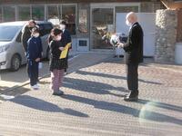 下校時には、これまでお世話になったスクールバスの運転手さんが退職されるため、全員で感謝の気持ちを伝えました。運転手さんから元気にあいさつできていてすばらしいと褒めていただきました。毎日、安全な登下校を支えていただき、本当にありがとうございました。