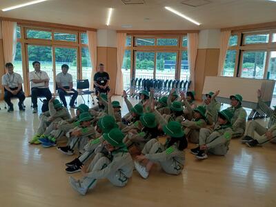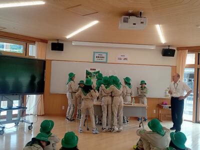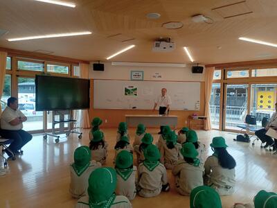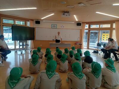堀本教育長から緑の少年団の心構えをお話しいただき、5・6年生全員が少年団としての意識が高まりました。
