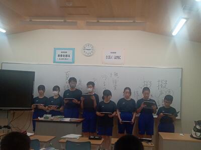7月12日に行われる天山祭りで披露する予定の連詩の音読練習を行いました。