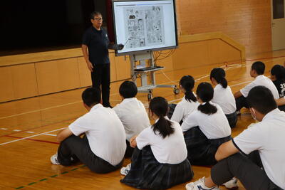 川内小中学園から福島大学大学院に行ってらっしゃる陣野先生が授業をしてくださいました。