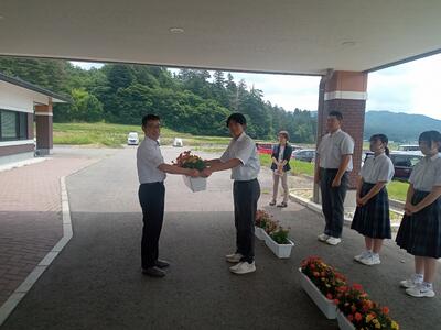 学校で育てた花を見ていただき、笑顔で過ごしていただければと思います。