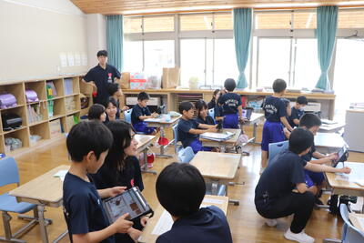 一緒に給食を食べたり、昼休みに児童生徒と交流をし、親睦を深めました。