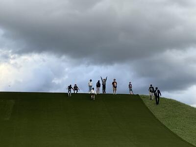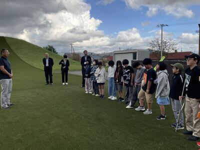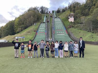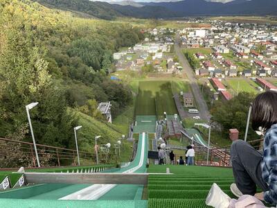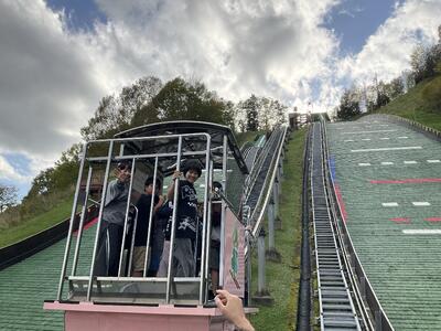 ダム見学の後は、三望台シャンツェ(スキージャンプ台)を見学しました。リニューアルしたばかりでとてもきれいでした。