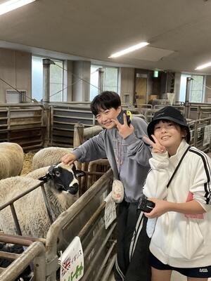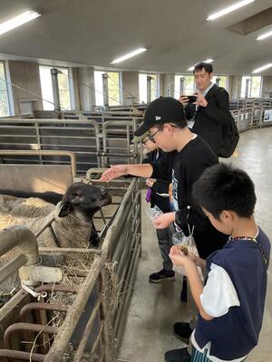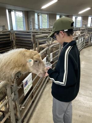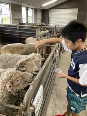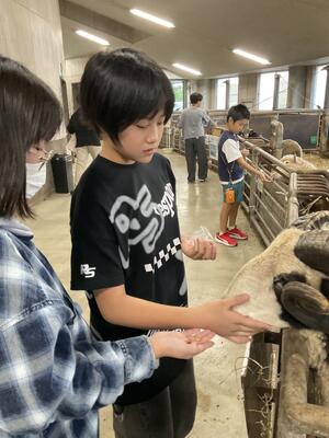 本日最後のプログラムは、羊と雲の丘のめん羊館に行き、羊にエサをやり、触れ合いました。
