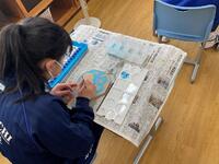 彫刻刀を使って、好きな形や模様を彫ったり、絵の具で彩色したりするなど、一人一人の工夫が見られました。