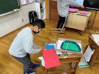3・4年生の図工の様子です。磁石同士が引きつけ合う性質を生かして、作品づくりに取り組んでいます。