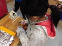 まず、家庭科・工作クラブでは、プラ板でアクセサリー作りを行いました。自分の好きなキャラクターを描き、制作することができました。
