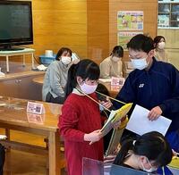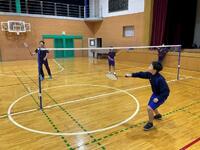 バドミントン部は、素振りや基礎打ちなど、先輩をお手本にして動きを真似していました。