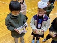 最後に、5年生による豆まきです。「鬼は外、福は内」のかけ声で力強く豆まきをしました。