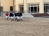 鼓笛移杖式に向けて、立ち位置を確認や校歌の演奏を行いました。全体で合わせると、リズムがずれてしまう場面も見られましたが、これまでの練習の成果を出そうとがんばって演奏できました。
