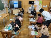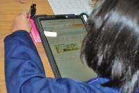低学年は、家庭で取り組めるドリル学習について、自分で操作しながら使い方を学んでいます。タブレットを使い慣れていない低学年の児童も先生に教えてもらいながら、興味をもって学習できました。