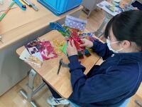 8年生の美術では、プッシュステンド工芸ランプを制作しています。植物や動物の模様を描き、そこにカラーセロハンを貼っています。色鮮やかな作品に仕上がりそうです。