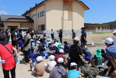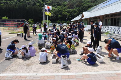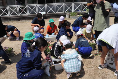 人権擁護委員の髙野様、猪狩様をお迎えし、Fukuファーミングフラワーの福塚様から苗植えの指導をしていただきました。
