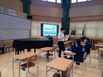 研究授業ではソナタ形式の構成に注目しながら鑑賞し、曲想の変化を聴きとるという内容でした。