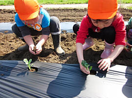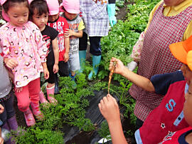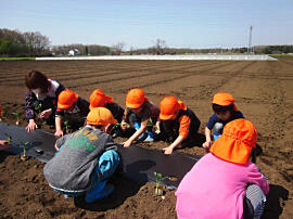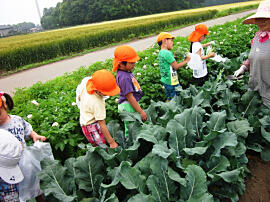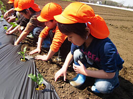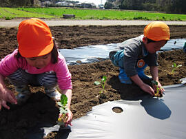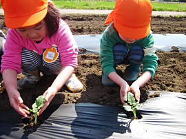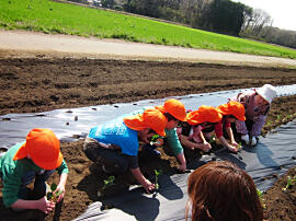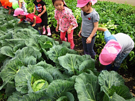 さくら組さんが、畑に行きました。今回は、キャベツ・ブロッコリー・じゃがいも・大根・人参です。たくさんあったけれど、みんな無事に植えられたかな?