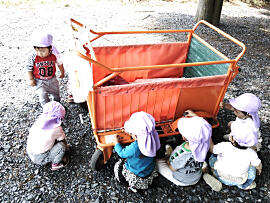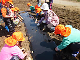 今のさくら組さんが年中組だった10月。チューリップの球根を植えました。