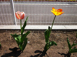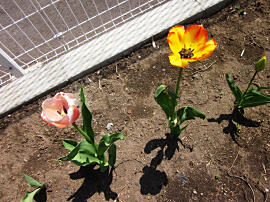 そして今日「先生~!」と元気のいい声が・・・♪赤白黄色のチューリップがきれいに咲いてくれました。