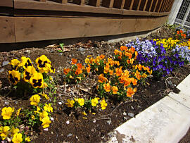 午前のおやつが終わると散歩を期待しているのか、戸外を見たりニコニコ笑顔の子どもたちです。嫌々被っていた色帽子も徐々に被れるようになり成長を感じている今日この頃です。ベビーカーに乗ると園庭のチューリップが「おはよう」とこちらを見ていました。花を見て「バイバイ」と手を振ったり、「きれいだね」と言っているかのようにパチパチと拍手して見せてくれるもも組さんです。満開のチューリップの前でハイポーズ!もも組保育室前の花壇のビオラもきれいに咲いていますよ。