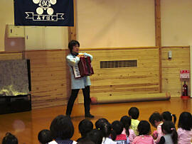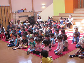 子どもの日のお祝いを兼ねて、4月のおたのしみ集会がありました♪ 園長先生の演奏するアコーディオンの音色に合わせて「こいのぼり」「ちゅーりっぷ」を歌ったり、お話しを聞きました(*^_^*)