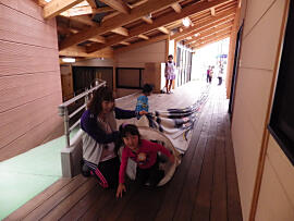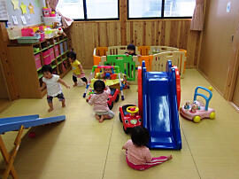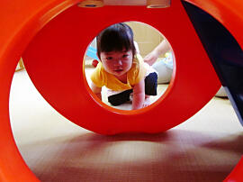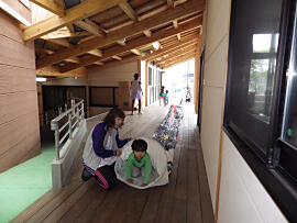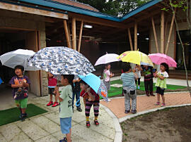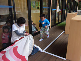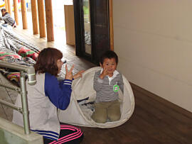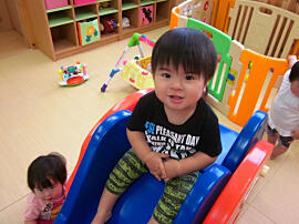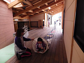 あいにくの雨でしたが、広いデッキでこいのぼりくぐりや滑り台で体を動かして遊ぶことができました☆