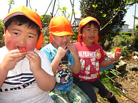 そして、「おおきくな~れ!おおきくな~れ!」とお歌を歌いながら張り切って出来ました。さくら組さん頑張りましたね。大きくなるのが楽しみですね。
