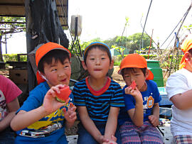 保育園に帰ってきた子どもたちは、おみやげのいちごをもってニコニコです♪いちご農家の皆様、大変お世話になりました☆