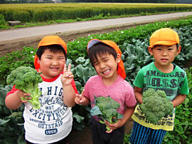 野菜と一緒にハイポーズ!!みんなとってもいい笑顔ですね。