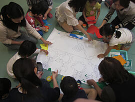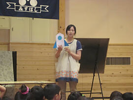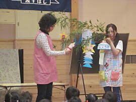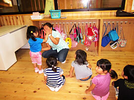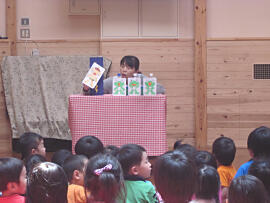 先生の出し物は、ペープサートでした。大きいお兄さんやお姉さんのクラスにお友達も赤ちゃんたちも集中して見ることができました。