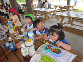 たんぽぽ組さんにとっては初めての親子遠足♪暑かったけど、おいしいお弁当も食べて楽しい一日でした(^^♪ 保護者の皆様、お世話になりました。