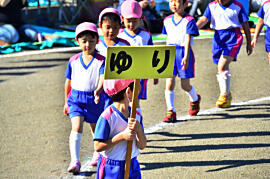ドリブルシュート!さくら組さんは日ごろの教室の成果があり上手です。ゆりさんも一生懸命です。
