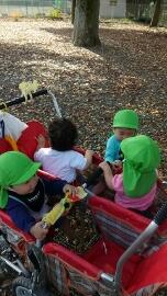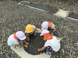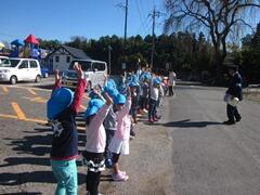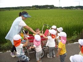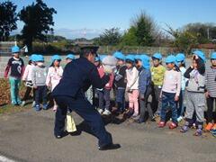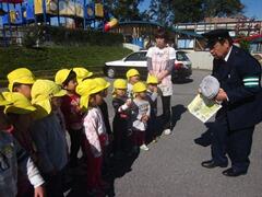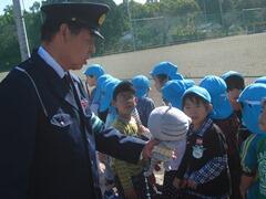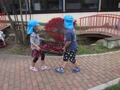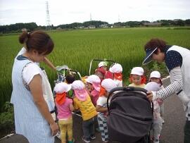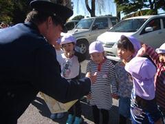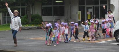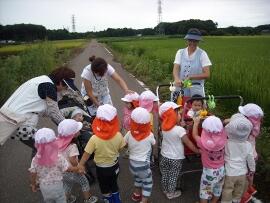 ゆり組さんは遠くまでの散歩は初めてだったので、お手伝いで入ってくれていたさくら組さんにリードしてもらい、交通ルールを守って歩きました。